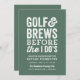 Celebrate the groom with a golf outing bachelor party. This simple bachelor party invitation features the wording "golf and brews before the I do's" along with custom text on a green background. The front of the golf outing invitation features plenty of room for invitation text and the back also has a block of text for more party details. This bachelor party invitation is part of a collection by Lea Delaveris Design where you can find more colours and coordinating bachelor party supplies. Also available as a digital bachelor party invitation.