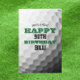A birthday card for golfers or golfing fans, this card has the look of a golf ball and can be personalized with any name, age or adjectives. Inside features a ball in the corner headed for a hole in one.