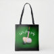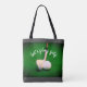 Let's play gold cusomizable golf ball tote bag design for golfers green and black with text.