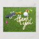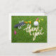 Golf ball and colourful tee green grass thank you postcard