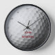 Celebrate your love of golf with this golf ball themed wall clock. Perfect for a den, office, the man cave, or anywhere! Personalize with any name.