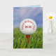 Close up of golf ball on red tee in green grass for Mum on Mother's Day