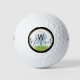 Custom printed golf balls with your name and monogram. Golf Ball on tee on a black background with gold accents.