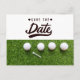 Put your golfing skills to the test with this unique save the date card! The card features a green and white golf ball on a grassy field with the words "Save the Date" written in a playful font. This card is perfect for couples who love spending time outdoors and enjoying a round of golf together.