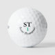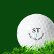 A simple and modern 2-initials monogram to identify his balls in the grass... stylish black and white design with initial letters and name... written lucky ball in a small script font style