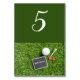 Golf ball with name on chalkboard are on green Table Number