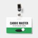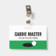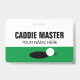 Golf Caddie Master reversible clip on name badge. CaddieMaster name badge tag for golf course assistant. Custom template for golf club or driving range personnel. Modern typography with putting green and ball design. Also great for coach, trainer, instructor, staff, marshal, employees, coworkers etc.