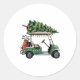 Golf Cart Christmas Tree Lights Golfing Golfer Fun Classic Round Sticker