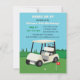 Invite your guests to swing on by to celebrate with the birthday boy or girl! This invitation features a white golf cart with two bags of golf clubs on a golf course. A green golf course with trees in the background. A golf ball in the foreground with a flag for personalisation of the age. Personalise easily with your party details.