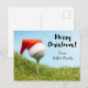 Golf Christmas Holiday with Santa hat on golf ball Postcard