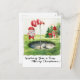This holiday season, tee off with joy and send warm wishes to your favourite golf enthusiast with our charming golf-themed Christmas card. this card sets the scene for a golfing holiday delight. Inside, delight them further with playful imagery of a golf ball sporting a Santa hat and a decorated golf cart traversing snowy fairways. Perfect for spreading cheer and celebrating their passion for the game amidst the magic of the season.