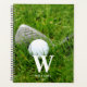 Custom golf personalised yearly planner featuring a golf club and ball on green grass. Use the online template fields to personalise with a name and monogram.