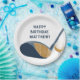 Create golfing themed party supplies for birthday parties and more. These paper plates feature my realistic style illustration of a golf club and golf ball in shades of blue and gold and are ready to be personalized with your own custom message in matching navy blue lettering.