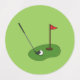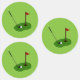 An illustration of a cute golf course hole, flag pole with red flag, and a golf club for golf lovers. This simple sport design is a gift idea for kids, golf trainer, father and mum, and sport lovers.