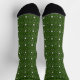 The main body of these socks is a dark green colour with a pattern of golf clubs and golf balls. The text around the top is fully editable, so you can put the same or different wording on each sock. The example text is "Golf Golf Golf Golf" and "Eat Sleep Golf Repeat". This is a great eco-friendly christmas stocking stuffer gift for a keen golfer.