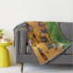 A quality printed throw has its advantages. This is a much finer weave throw than its loopier cousins, and though lighter, it is worth the investment for custom room accessorizing. The back is much prettier than the typical brown, and the fringe on the long sides very vivid, the selvage nicely done. Before photographing, I washed the throw in cold water, delicate, with a thicker woven throw the same size. On tumble dry low, this throw was dry in half the time as the other. This is a very practical quality if you use throws for furniture covers or to wrap up in frequently. The sleekness of the fabric makes it a great layer for accenting or protecting without the feeling of sitting on too much stuff. Perfect for napping or when you feel a light chill coming on. The color printing is beautiful and on this fabric, matched the design and color of my Photoshop image. This is an advantage for blending room fabrics and colors. The fringe on the short sides prints the colors from the design image and therefore varies from the side fringe. I streaked a white fractal line through the plaid pattern to give the illusion of weaving. This printed as crisp as an illusory thread, and put some white in the short side fringe, showing another advantage of print vs loomed- for artistic purposes, line lines, detail, and color integrity can be planned and preserved. My loomed throws have color limitations and more of a needlepoint texture. Print throws reproduce an exact image. The throw felt a little stiff straight out of the package, but this went away in the first delicate wash. Of course I searched the wash water for ink or bleeding and there was none.