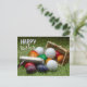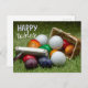 Happy Easter to golfer Holiday Postcard with golf cart and golf tee on green grass background