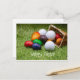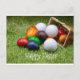 Golf Easter to golfer with eggs & Golf ball are on green grass card