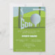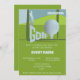 This amazing golf event invitation features a fantastic image of a golfer and a big golfball with the text golf in front of a stunning green hill background – perfect for all golf lovers or golf clubs out there!