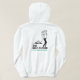 Fun hoodie for our golf enthusiasts depicts a male golfer in silhouette under puppet strings with bold font that reads "The Golf-Father" and below it is editable text that currently reads: "I settle things on the green." Mountains and a sun round out the design in the background. Perfect for dad or grandfather on Father's Day or birthdays.