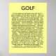 I'm not saying my golf game went bad, but if I grew tomatoes, they'd come up sliced. Golf is a game in which you yell "fore," shoot six, and write down five. If you think it's hard to meet new people, try picking up the wrong golf ball. The reason the pro tells you to keep your head down is so you can't see him laughing. Golf is a good walk spoiled. I don't care to join any club that's willing to have me as a member. Have you ever noticed what golf spells backwards? Just how childlike golf players become is proven by their frequent inability to count past five. The people who gave us golf and called it a game are the same people who gave us bag pipes and called it music. The only thing a golfer needs is more daylight. Golf is played by millions of mature men whose wives think they are out having fun. The difference between golf and government is that in golf you can't improve your lie. Golf is a day spent in a round of strenuous idleness. If you watch a game, it's fun... iif you play it, it's recreation... if you work at it, it's golf. The other day I broke 70... that's a lot of clubs. The uglier a man's legs are, the better he plays golf -- it's almost a law. I've got just one problem; I'm standing too close to the ball after I've hit it.