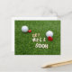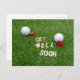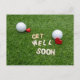 Golf Get well soon card with golf ball and tee and love red heart on green grass