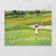 Send cheerful recovery wishes with this golf-themed postcard featuring a golfer on the green. Perfect for golf lovers who are under the weather or recovering, this card brings a playful touch of the course to brighten their day. A thoughtful way to say “get well soon” with a sporty twist.