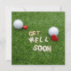 Wishing you a speedy recovery with this golf-themed "Get Well Soon" postcard featuring a picture of a golf ball resting on the vibrant green grass. Take some time to relax and heal, knowing that we're thinking of you. Whether you're an avid golfer or simply appreciate the beauty of the sport, this postcard serves as a gentle reminder of your love for the game. May it bring a smile to your face and help uplift your spirits as you embark on your journey towards wellness. Get well soon!