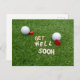 Wishing you a speedy recovery with this golf-themed "Get Well Soon" postcard featuring a picture of a golf ball resting on the vibrant green grass. Take some time to relax and heal, knowing that we're thinking of you. Whether you're an avid golfer or simply appreciate the beauty of the sport, this postcard serves as a gentle reminder of your love for the game. May it bring a smile to your face and help uplift your spirits as you embark on your journey towards wellness. Get well soon!