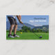 Photo of a man about to tee off on a golf course. Business card template for Golf related businesses.