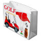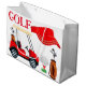 A Large Gift Bag For The Golf Player Designed With Hat, Clubs, Ball, And Cart In Red
