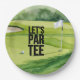 Golf Let’s Par tee with golf flag on green Paper Plate