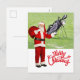 Golf Merry Christmas with Santa Claus at flag Holiday Postcard