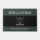 Modern Golf Monogram Family Name Green Doormat. Features customisable golf clubs and ball monogram initial, established year, family name. All text, fonts, and colours may be customised by you with the tools provided with in Zazzle’s personalisation menu. We invite you to visit our Zazzle store, GJ Design Co, to view matching products and more.