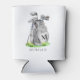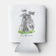 This stylish monogram can cooler sleeve features a grey watercolor golf bag filled with clubs, surrounded by a touch of green grass. The design incorporates a classic serif font initial monogram on the bag, blending seamlessly into the artwork. Below the monogram, the full name is displayed in a matching serif font, adding a refined and personal touch. The monogram is currently in dark grey, almost black, to coordinate with the bag’s accents, but it can be customised to your preferred colour.