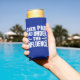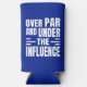 Can cooler is shown in a royal blue colour funny golf over par print.