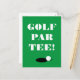 Golf Par Tee Postcard template for club party. Custom card with green putting hole. Fun for Birthday at the golf course, club or driving range.