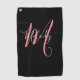 Golf Pink Monogram with white script on black Golf Towel