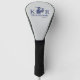 The headcover features a classic design with a blue graphic illustration of a golfer and is customised with two initials and the golfer’s name. It's crafted from high-quality materials to protect your clubs while adding a unique, personal touch to your gear.