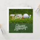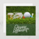 Golf retirement with golf ball and beer on green card