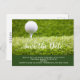 Golf save the date with golf ball on green grass postcard