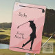 Silhouette of a female player on a red gradient. Combined with your name and text or slogan.