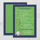Hosting a golf tournament charity event? This handsome design is perfect! It features clean, striking lines, two gulf clubs and ball against a green background with a blue border. If you need help with your information layout, just contact us and we'll be happy to do it for you.