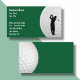 Golf business card template with real golf ball graphic and golfer in a modern style that Includes a text layout you can customise online for a golf course or golf shop business card. You can also use this for golf lessons business card or golf