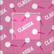 Golf balls on tees sport repeat personalised pink pattern sporting design fabric. White golf balls on a hot pink golf tee with a light pink background colour which can be changed if required. Ideal for golfers and golfing fans. Customise with your own choice of name, currently reads Claudia. Art and designed by Sarah Trett.
