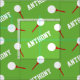 Golf balls on tees sport repeat personalised grass green pattern sporting design fabric. White golf balls on a red golf tees with a grassy green background colour which can be changed if required. Ideal for golfers and golfing fans. Customise with your own choice of name, currently reads Anthony. Art and designed by Sarah Trett.