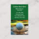 Golf design business cards in a smart vertical layout with graphic of a ball splashing into a water trap on the golf course and simple editable layout for a golf trainer, pro, or golf supplies shop.