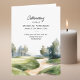 A celebration of life funeral program featuring a watercolor painting of a golf course. Add your photo to the back and custom text to all four sides - an obituary, order of the service, poem, thank you message, etc. This program is so easy to personalise - just click “personalise this template” to change the text and photos or click edit to customise even further. This is truly a one-of-a-kind program that people will cherish forever.