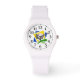 This modern golf time watch features a tee with a ball and a club poised to hit it with a white face and band. It's perfect for the golf lover in your life who lives for tee time.