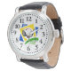 This modern golf time watch features a tee with a ball and a club poised to hit on a white face with black leather band. It's perfect for the golf lover in your life who lives for tee time.